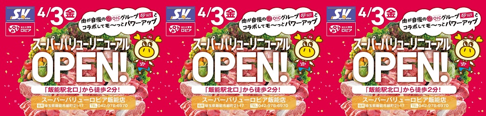 4/3(金)「ロピア飯能店」リニューアルオープン